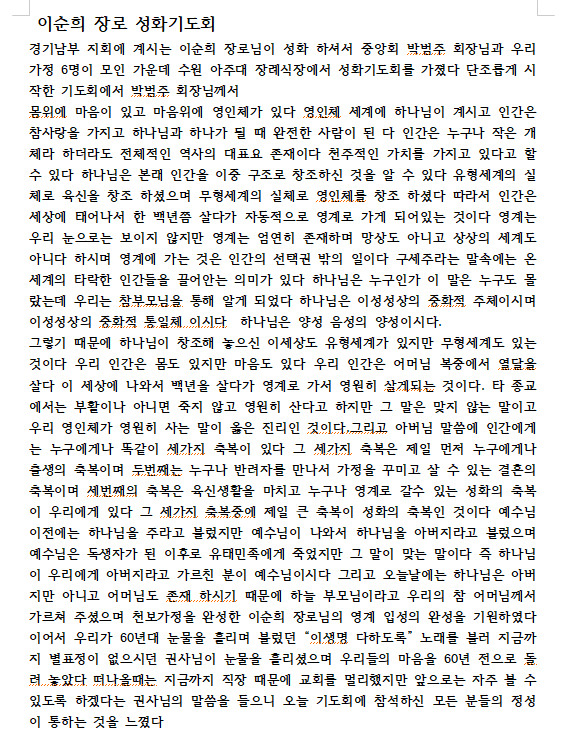 경기남부지회 이순희 장로(81세, 부인 한례 권사)께서 성화하셨기에 알립니다.