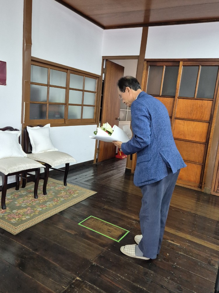 -참아버님께 꽃다발 봉정 --------박범주 중앙회장