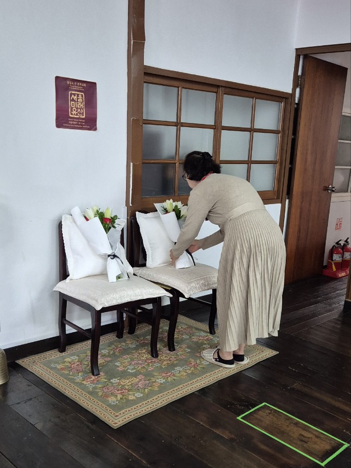 -홀리마더 한님께 꽃다발 봉정 ---박신자 용산지회장