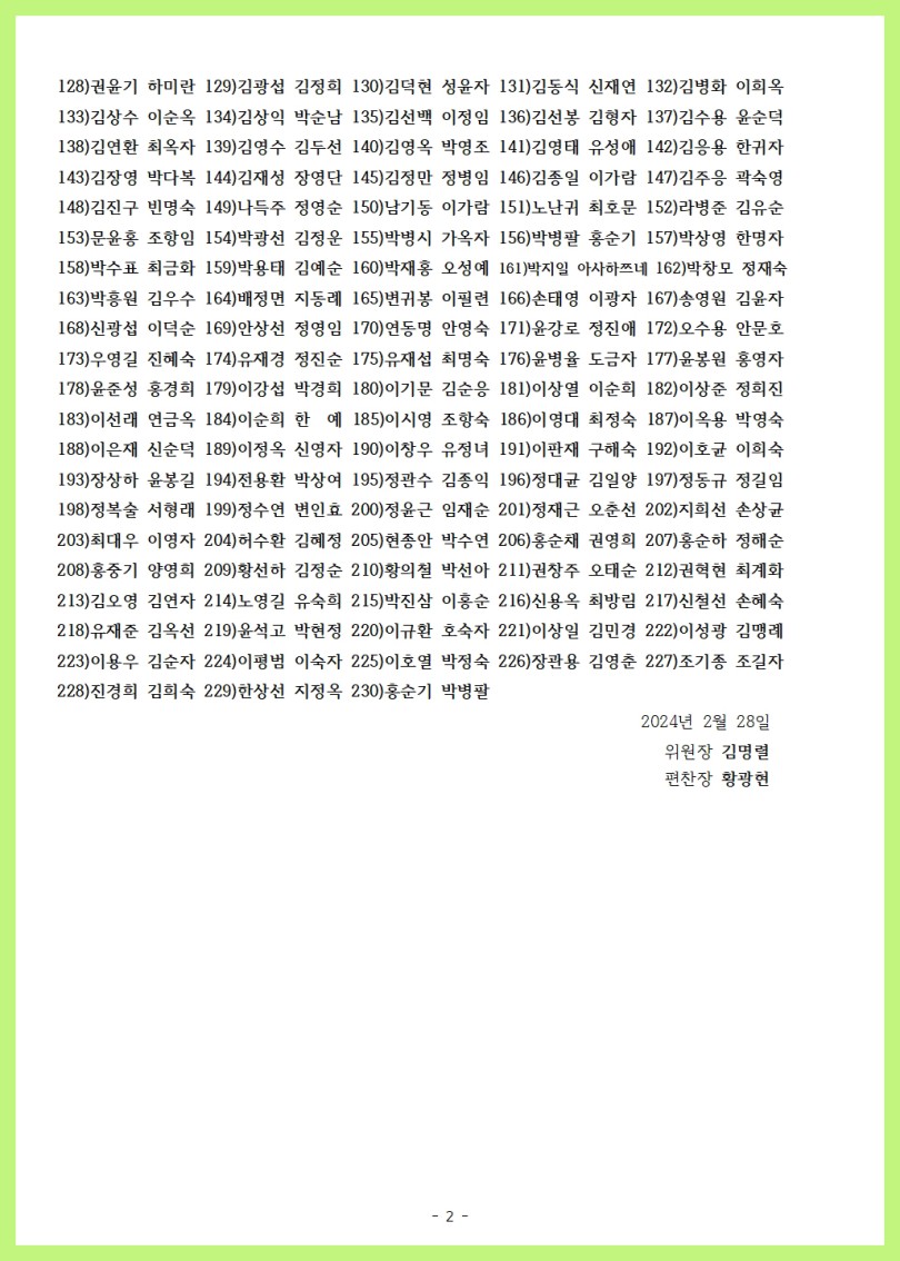 제5신 전언문 작성자 정보 황광현쪽지보내기 메일보내기 자기소개 아이디로 검색 전체게시물쪽지보내기 메일보내기 자기소개 아이디로 검색 전체게시물작성 1,675 조회 작성일2024.02.28 컨텐츠 정보 0댓글 본문 SNS 공유 관련자료 댓글 0 개 등록된 댓글이 없습니다. 로그인한 회원만 댓글 등록이 가능합니다. 이전 전국 지회장 회의 안내 작성일 2024.03.08 다음 제4신 전언문 작성일 2024.02.19 목록 × SNS 공유 가정회소개 회장인사 가정회 정관 가정회 연혁 임원 및 구성 역대 주요임원 가정회 역대회장 가정회 소식