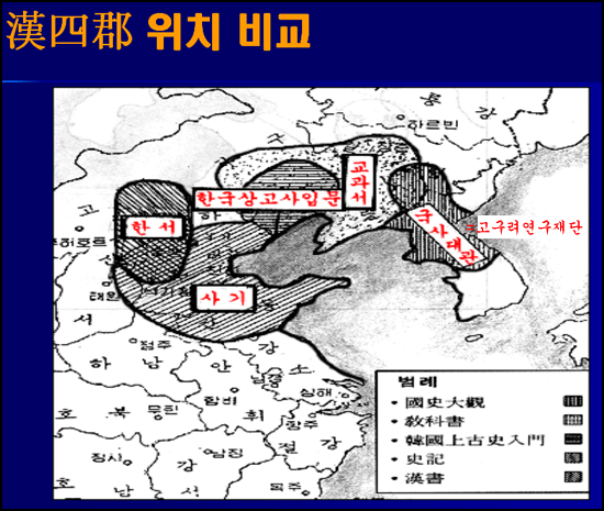 ▲ 대륙동부에 있었던 한사군을 북한 지역으로 끌고 온 매국 식민사학계. 이들의 매국 행위 때문에 언젠가는 북한 땅은 중국으로 넘어가게 되어 있다. 한사군이 있던 위치는 옛 조선의 강역의 일부이다.