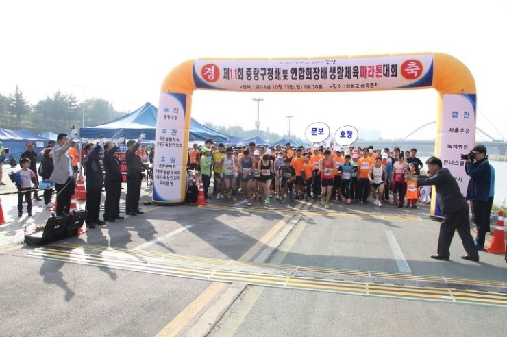 그녀의 권고에 따라 2014.10.19.(일) 제11회 중랑구청장배 및 연합회장배 생활체육 마라톤 대회에 김명렬위원장님과 함께 참가하게 되었다.