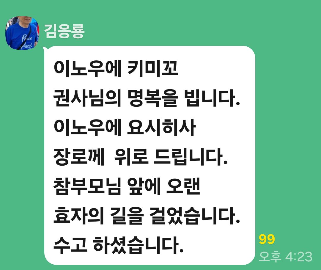 혹시 인연이 닿은 분들께서 위로의 메시지나 전화해도 좋을 것 같습니다.