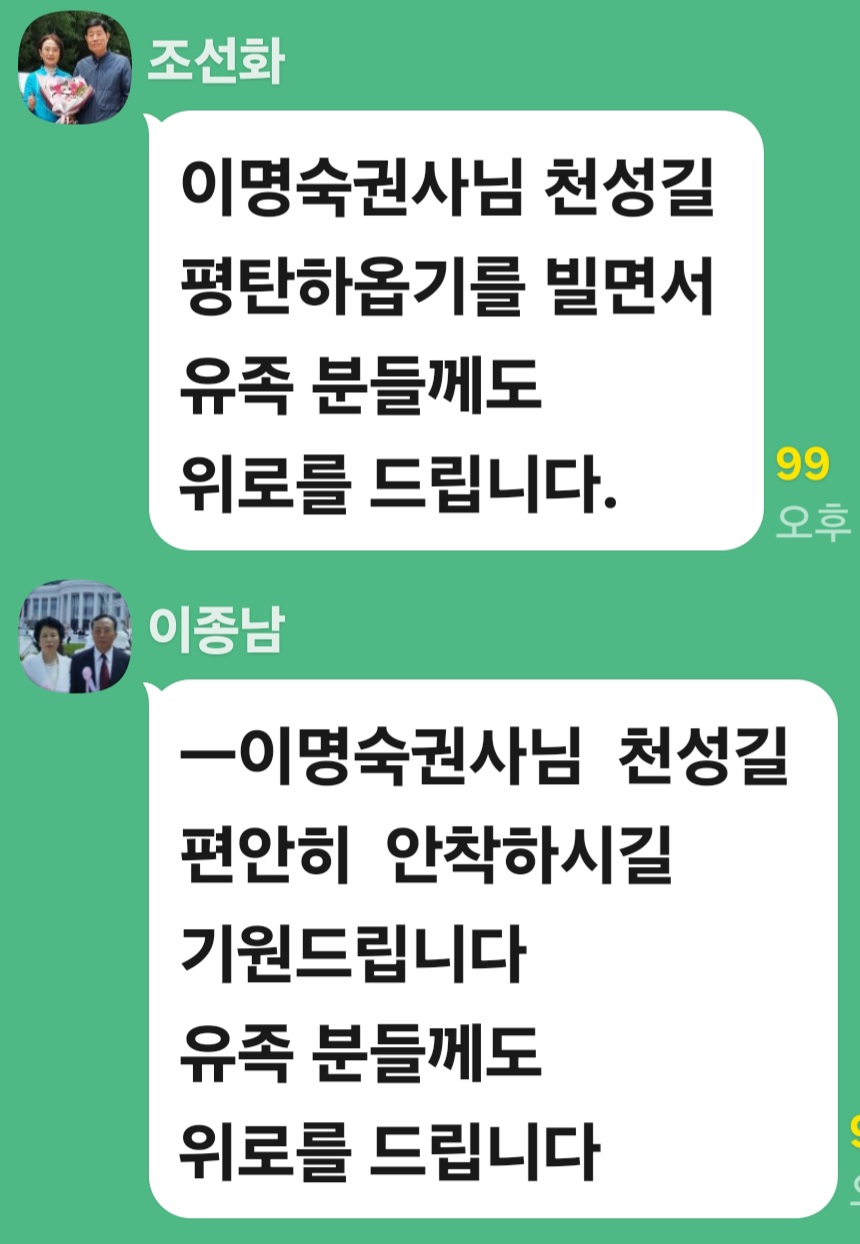 대구대교회소속  이명숙 권사께서(남편 박명수) 1년 여 투병 끝에 2025년 2월 2일 성화하셨습니다.