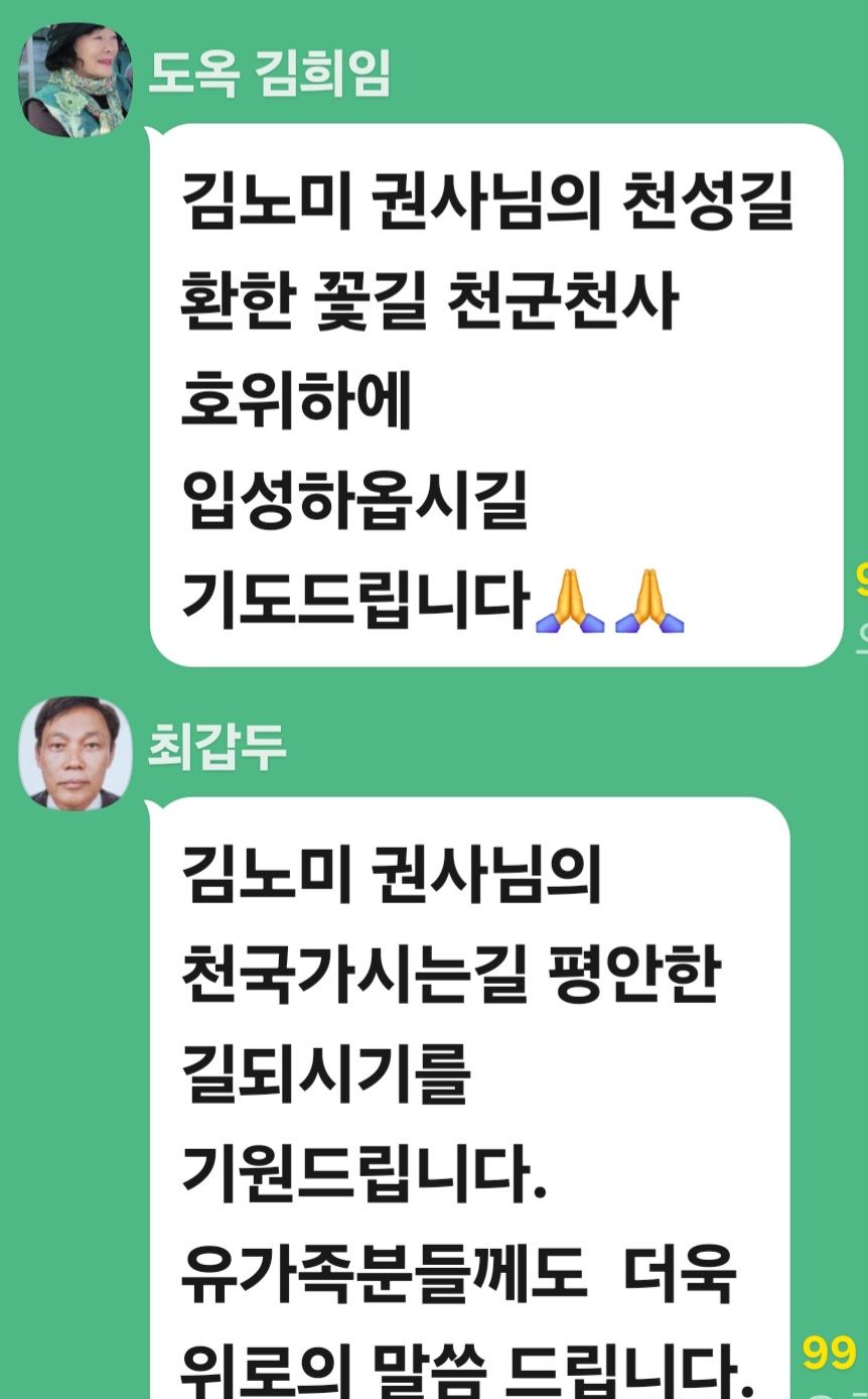 김노미 권사님 (6500기성가정)의 천상세계 입적을 위해 기도와 정성을 부탁드립니다.