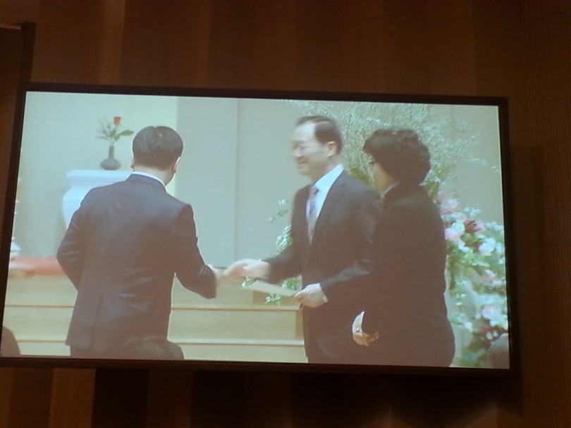 2014년 2월 23일 천복궁 대 예배시간에 유경석 협회장님의 기원절 참부모님 공로상 수상식이 거행 되었다.