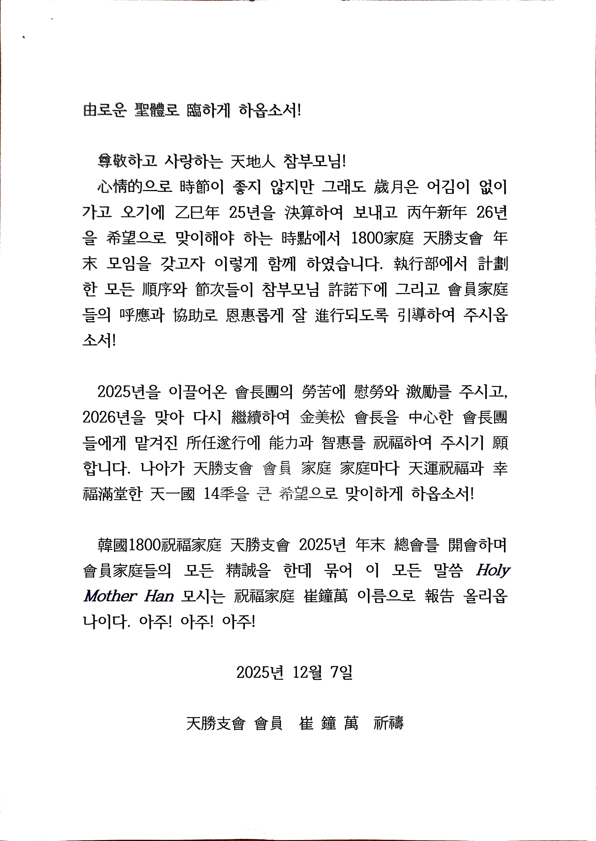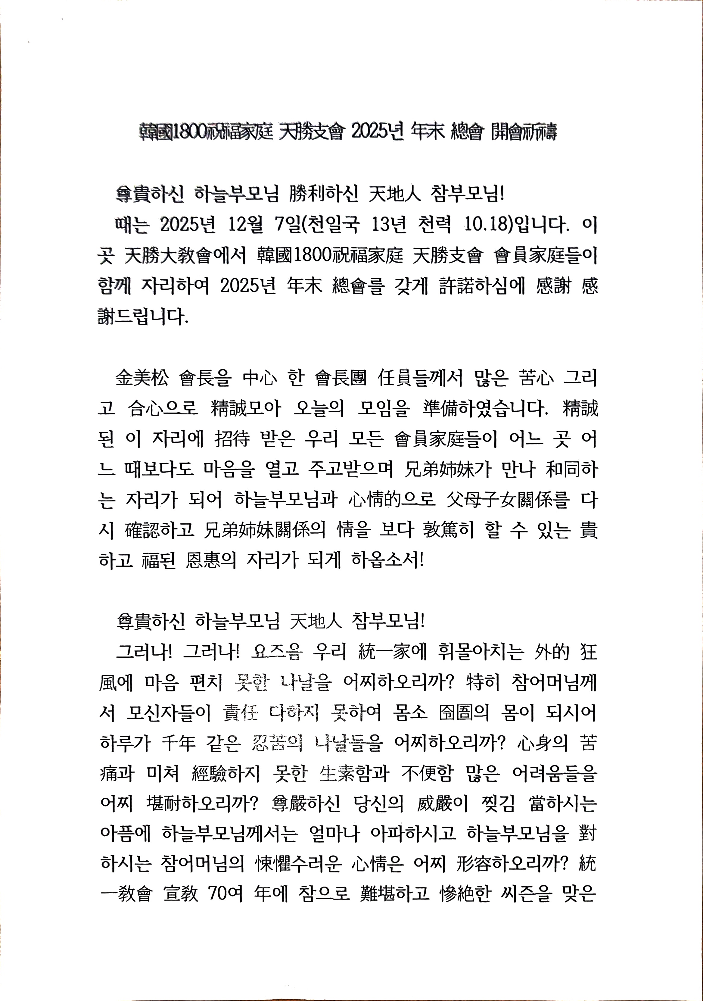 [천승지회] 분류 천승지회 송년회 작성자 정보 김태순쪽지보내기 메일보내기 자기소개 아이디로 검색 전체게시물쪽지보내기 메일보내기 자기소개 아이디로 검색 전체게시물작성 51 조회 작성일 2025.12.15 08:18 컨텐츠 정보 0 댓글 게시물 옵션 글검색 본문 안녕하세요❣️ 천승지회는 12월 7 오후 교회에서 62명의 회원 형제자매들이 모여 연말 총회를 했습니다.옥윤호목사님 말씀회장인사와 회칙을 수정등 온화한 분위기로송년회를 하였습니다.참고로 총무가 몸이 불편하여신재삼 감사가 사회를 진행 하였습니다.천승지회총무 ㅡ김동건ㅡ SNS 공유 관련자료 댓글 3 개 김태순님의 댓글 김태순쪽지보내기 메일보내기 자기소개 아이디로 검색 전체게시물쪽지보내기 메일보내기 자기소개 아이디로 검색 전체게시물 작성일 08:33 <p><img src="https://www.1800.or.kr/data/editor/2512/b62cd2650255351f0a7f4852c7723b94_1765754894_6095.jpg" title="b62cd2650255351f0a7f4852c7723b94_1765754894_6095.jpg"><br style="clear:both;"> </p><p><img src="https://www.1800.or.kr/data/editor/2512/b62cd2650255351f0a7f4852c7723b94_1765754937_2794.jpg" title="b62cd2650255351f0a7f4852c7723b94_1765754937_2794.jpg"><br style="clear:both;"><img src="https://www.1800.or.kr/data/editor/2512/b62cd2650255351f0a7f4852c7723b94_1765755049_5018.jpg" title="b62cd2650255351f0a7f4852c7723b94_1765755049_5018.jpg"><br style="clear:both;"><br style="clear:both;"><br style="clear:both;"><img src="https://www.1800.or.kr/data/editor/2512/b62cd2650255351f0a7f4852c7723b94_1765755181_3863.jpg" title="b62cd2650255351f0a7f4852c7723b94_1765755181_3863.jpg"><br style="clear:both;"><img src="https://www.1800.or.kr/data/editor/2512/b62cd2650255351f0a7f4852c7723b94_1765755182_52.jpg" title="b62cd2650255351f0a7f4852c7723b94_1765755182_52.jpg"><br style="clear:both;"><img src="https://www.1800.or.kr/data/editor/2512/b62cd2650255351f0a7f4852c7723b94_1765755183_7888.jpg" title="b62cd2650255351f0a7f4852c7723b94_1765755183_7888.jpg"><br style="clear:both;"><img src="https://www.1800.or.kr/data/editor/2512/b62cd2650255351f0a7f4852c7723b94_1765755185_0122.jpg" title="b62cd2650255351f0a7f4852c7723b94_1765755185_0122.jpg"><br style="clear:both;"><img src="https://www.1800.or.kr/data/editor/2512/b62cd2650255351f0a7f4852c7723b94_1765755186_1421.jpg" title="b62cd2650255351f0a7f4852c7723b94_1765755186_1421.jpg"><br style="clear:both;"><img src="https://www.1800.or.kr/data/editor/2512/b62cd2650255351f0a7f4852c7723b94_1765755187_7322.jpg" title="b62cd2650255351f0a7f4852c7723b94_1765755187_7322.jpg"><br style="clear:both;"> </p> 김태순님의 댓글 김태순쪽지보내기 메일보내기 자기소개 아이디로 검색 전체게시물쪽지보내기 메일보내기 자기소개 아이디로 검색 전체게시물 작성일 08:49 <p><img src="https://www.1800.or.kr/data/editor/2512/b62cd2650255351f0a7f4852c7723b94_1765755969_4684.jpg" title="b62cd2650255351f0a7f4852c7723b94_1765755969_4684.jpg"><br style="clear:both;"><img src="https://www.1800.or.kr/data/editor/2512/b62cd2650255351f0a7f4852c7723b94_1765756101_6352.jpg" title="b62cd2650255351f0a7f4852c7723b94_1765756101_6352.jpg"><br style="clear:both;"><img src="https://www.1800.or.kr/data/editor/2512/b62cd2650255351f0a7f4852c7723b94_1765756103_4563.jpg" title="b62cd2650255351f0a7f4852c7723b94_1765756103_4563.jpg"><br style="clear:both;"><img src="https://www.1800.or.kr/data/editor/2512/b62cd2650255351f0a7f4852c7723b94_1765756104_5618.jpg" title="b62cd2650255351f0a7f4852c7723b94_1765756104_5618.jpg"><br style="clear:both;"><img src="https://www.1800.or.kr/data/editor/2512/b62cd2650255351f0a7f4852c7723b94_1765756105_827.jpg" title="b62cd2650255351f0a7f4852c7723b94_1765756105_827.jpg"><br style="clear:both;"><img src="https://www.1800.or.kr/data/editor/2512/b62cd2650255351f0a7f4852c7723b94_1765756107_3829.jpg" title="b62cd2650255351f0a7f4852c7723b94_1765756107_3829.jpg"><br style="clear:both;"> </p> 김태순님의 댓글 김태순쪽지보내기 메일보내기 자기소개 아이디로 검색 전체게시물쪽지보내기 메일보내기 자기소개 아이디로 검색 전체게시물 작성일 08:55 <p><img src="https://www.1800.or.kr/data/editor/2512/b62cd2650255351f0a7f4852c7723b94_1765756408_1877.jpg" title="b62cd2650255351f0a7f4852c7723b94_1765756408_1877.jpg"><br style="clear:both;"><img src="https://www.1800.or.kr/data/editor/2512/b62cd2650255351f0a7f4852c7723b94_1765756422_1453.jpg" title="b62cd2650255351f0a7f4852c7723b94_1765756422_1453.jpg"><br style="clear:both;"><img src="https://www.1800.or.kr/data/editor/2512/b62cd2650255351f0a7f4852c7723b94_1765756423_6157.jpg" title="b62cd2650255351f0a7f4852c7723b94_1765756423_6157.jpg"><br style="clear:both;"><img src="https://www.1800.or.kr/data/editor/2512/b62cd2650255351f0a7f4852c7723b94_1765756425_0571.jpg" title="b62cd2650255351f0a7f4852c7723b94_1765756425_0571.jpg"><br style="clear:both;"><img src="https://www.1800.or.kr/data/editor/2512/b62cd2650255351f0a7f4852c7723b94_1765756426_3539.jpg" title="b62cd2650255351f0a7f4852c7723b94_1765756426_3539.jpg"><br style="clear:both;"><img src="https://www.1800.or.kr/data/editor/2512/b62cd2650255351f0a7f4852c7723b94_1765756456_256.jpg" title="b62cd2650255351f0a7f4852c7723b94_1765756456_256.jpg"><br style="clear:both;"><img src="https://www.1800.or.kr/data/editor/2512/b62cd2650255351f0a7f4852c7723b94_1765756458_5334.jpg" title="b62cd2650255351f0a7f4852c7723b94_1765756458_5334.jpg"><br style="clear:both;"><img src="https://www.1800.or.kr/data/editor/2512/b62cd2650255351f0a7f4852c7723b94_1765756460_7421.jpg" title="b62cd2650255351f0a7f4852c7723b94_1765756460_7421.jpg"><br style="clear:both;"> </p> 로그인한 회원만 댓글 등록이 가능합니다. 다음 천승지회 춘계야유회 리포트 작성일 2025.04.20 목록 × SNS 공유 지회활동 지회활동